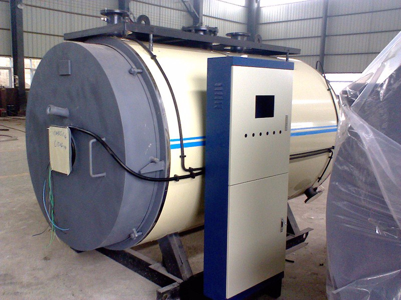 該產品屬臥式大功率蒸汽鍋爐,采用爐體電控制柜分離方式,避免了電器元件受熱老化而影響使用壽命。電熱管選用國內外**產品、正常使用壽命約20000小時,熱效率近**,運行安靜、清潔,符合環保的要求,不會向大氣排放NOx(氮氧化合物)。運行采用PLC控制系統,全免操作鈕、全免指示燈、觸摸屏面板、中英文顯示、人機對話、操作授權、實時信息、自動翻頁。